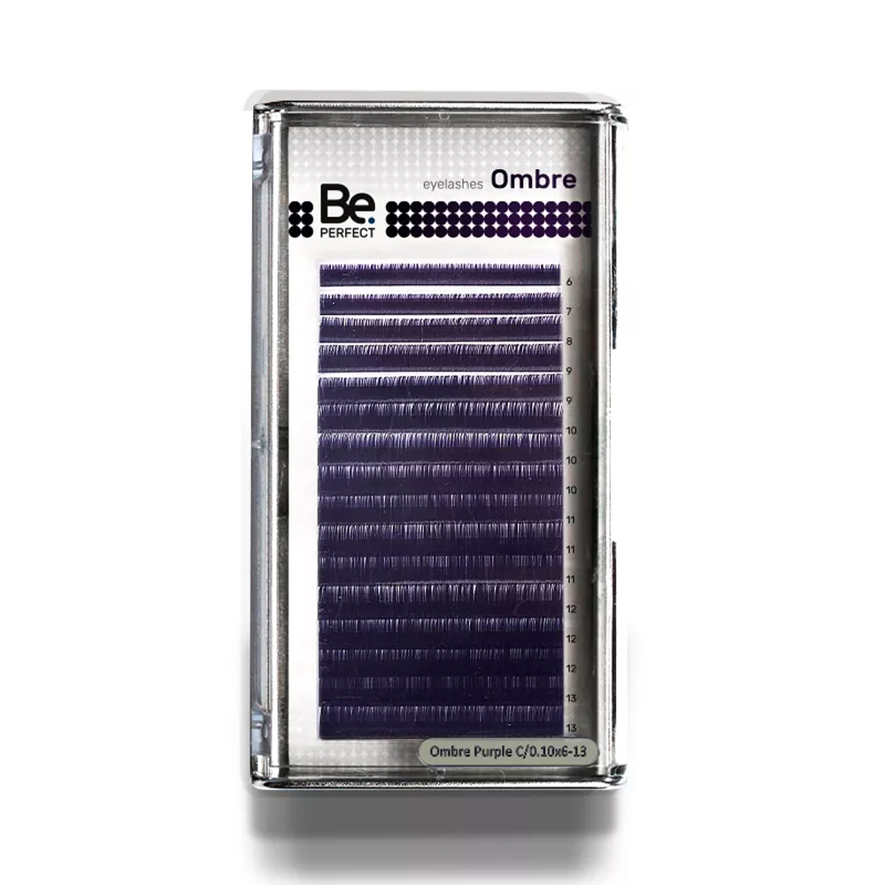 Ресницы Be Perfect Ombre Purple MIX применяются при наращивании ресниц профессиональными лэшмейкерами. Современное волокно позволяет добиться идеального изгиба, при этом ресницы не ломаются и легко снимаются с ленты, на которой благодаря плотному расположению помещено максимальное количество ресниц.