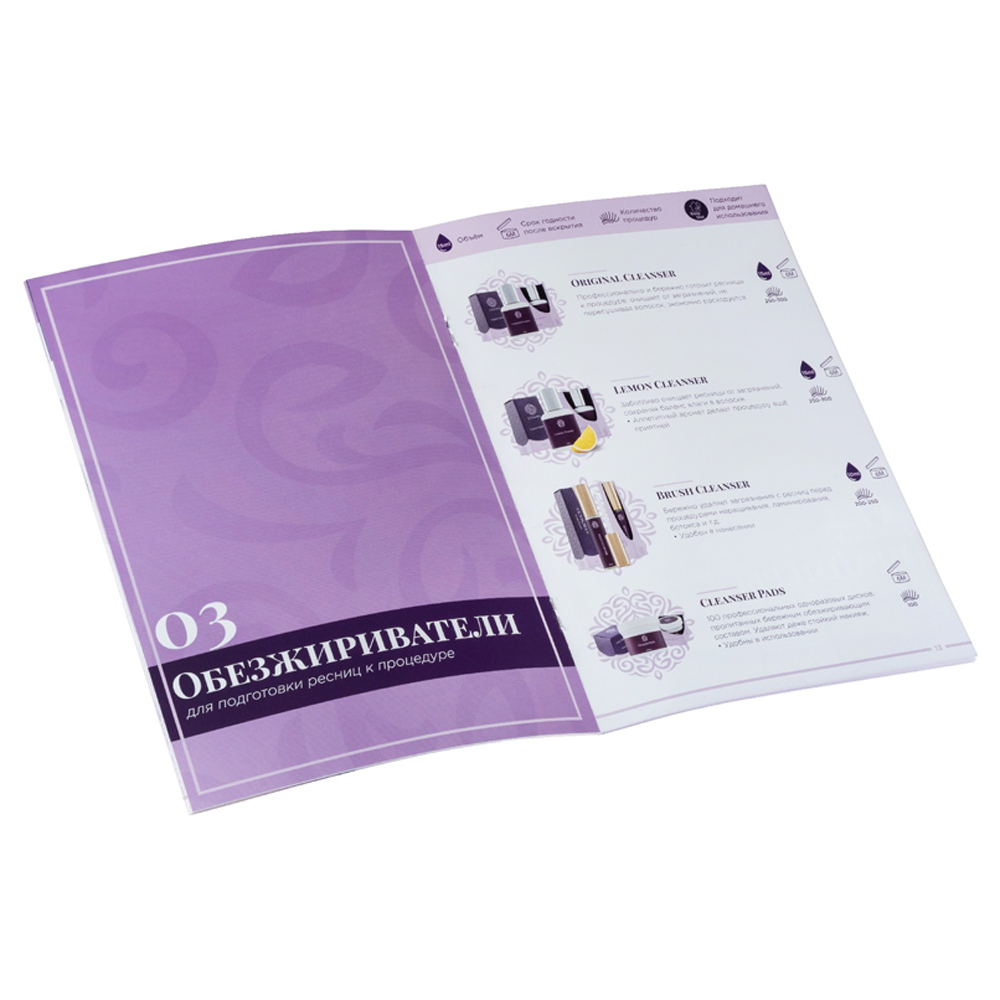 В иллюстрированном каталоге презентованы преимущества бренда и собран весь актуальный ассортимент товаров для стильного наращивания ресниц. Бренд предоставляет всё необходимое, что может пригодиться в работе лэшмейкера.