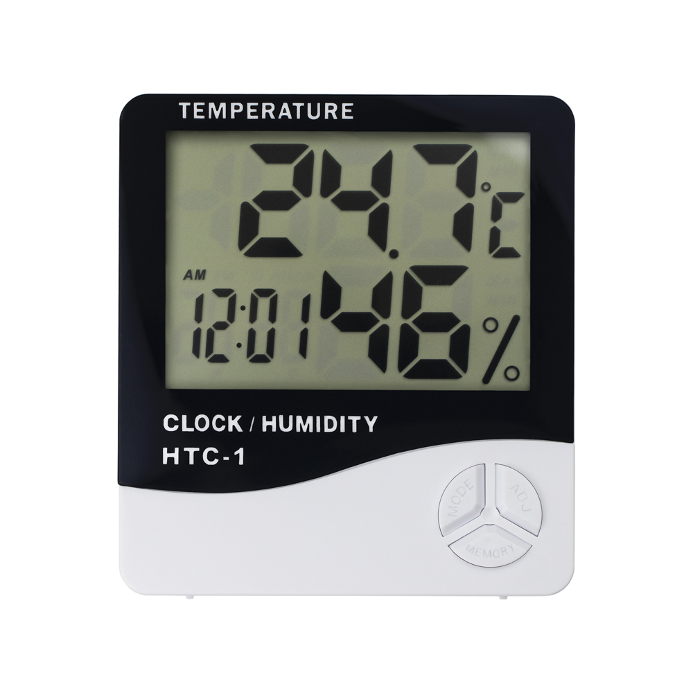 На его дисплее отображаются показатели температуры, влажности и времени.